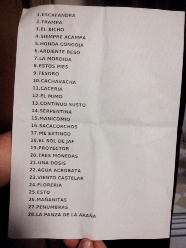 LISTA DE TEMAS DEL RECITAL 18/10/14, PLATAFORMA LAVARDEN
